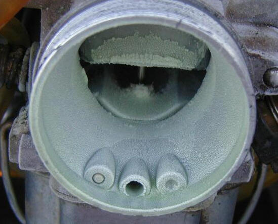 considerable ice was visible on the outside of the carburettor and the